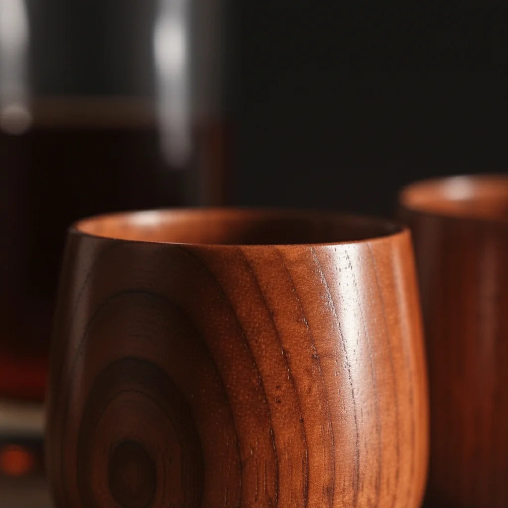 These aren't just glasses; they're conversation starters. Each one is handmade with a unique design and visible wood grain, transforming your drinking experience into a luxurious, one-of-a-kind ritual that truly stands out.